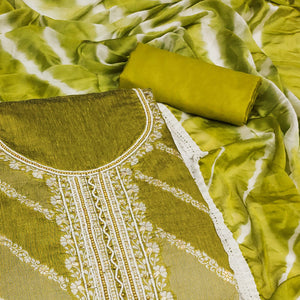 Mehandi Green Woven Banarasi Silk Dress Material |