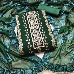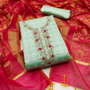 Green Floral Woven With Handwork Banarasi Silk Dress Material |