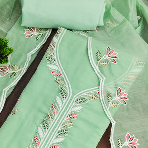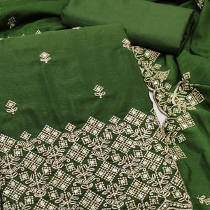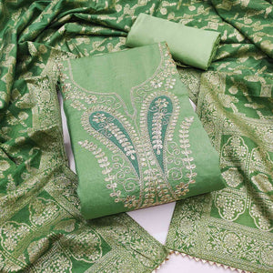 Green Cotton Silk Dress Material Embe...