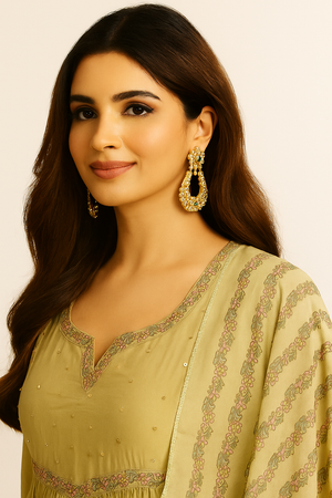 Festive Wear Green Vichitra Silk Dres...
