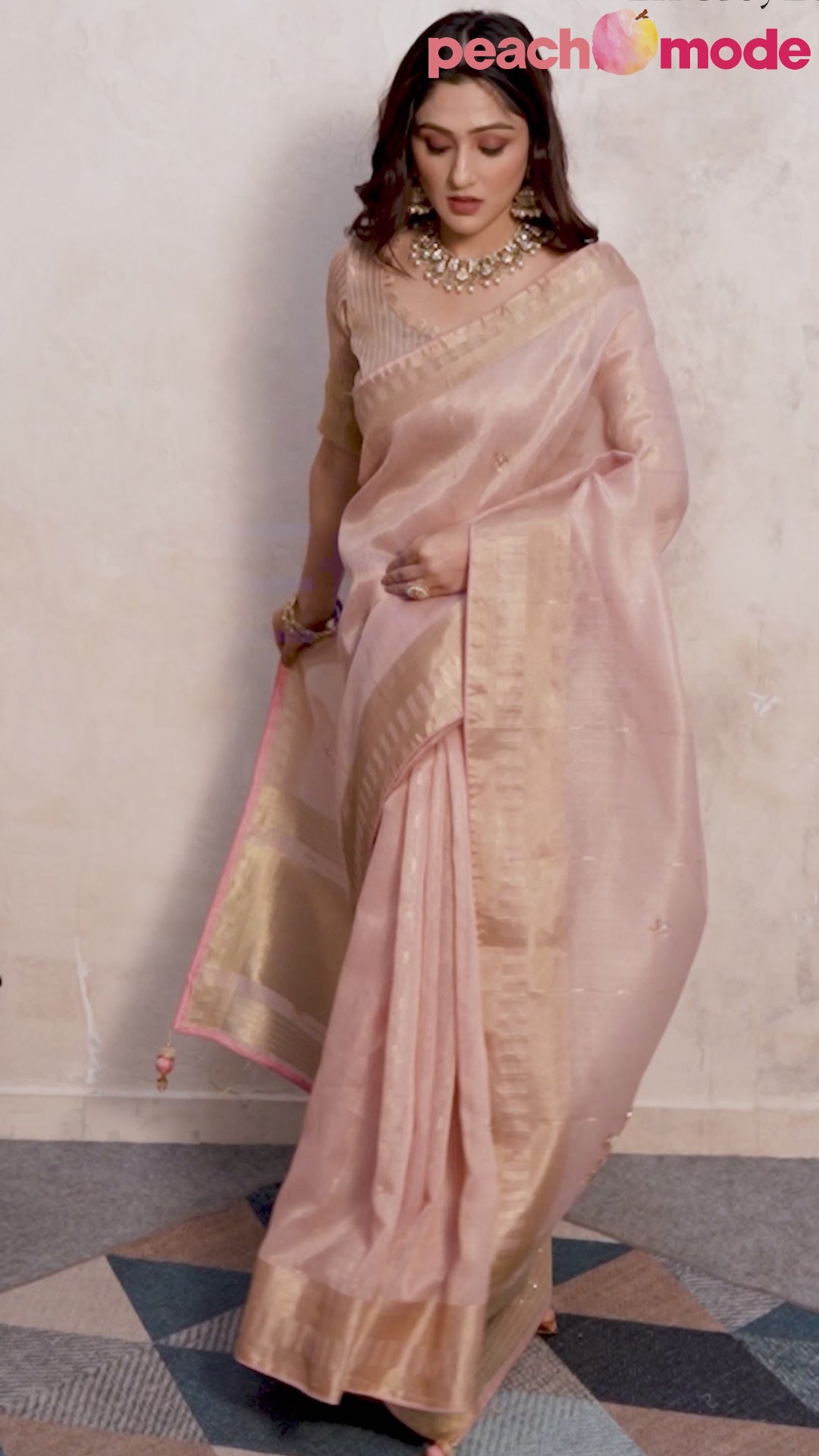 Pink colored saree is made from linen slub fabric which is highlighted with stone work as shown. Comes along with unstitched linen slub blouse piece which you can customize as per your design/style. Occasion - You can wear this saree for party and festive.