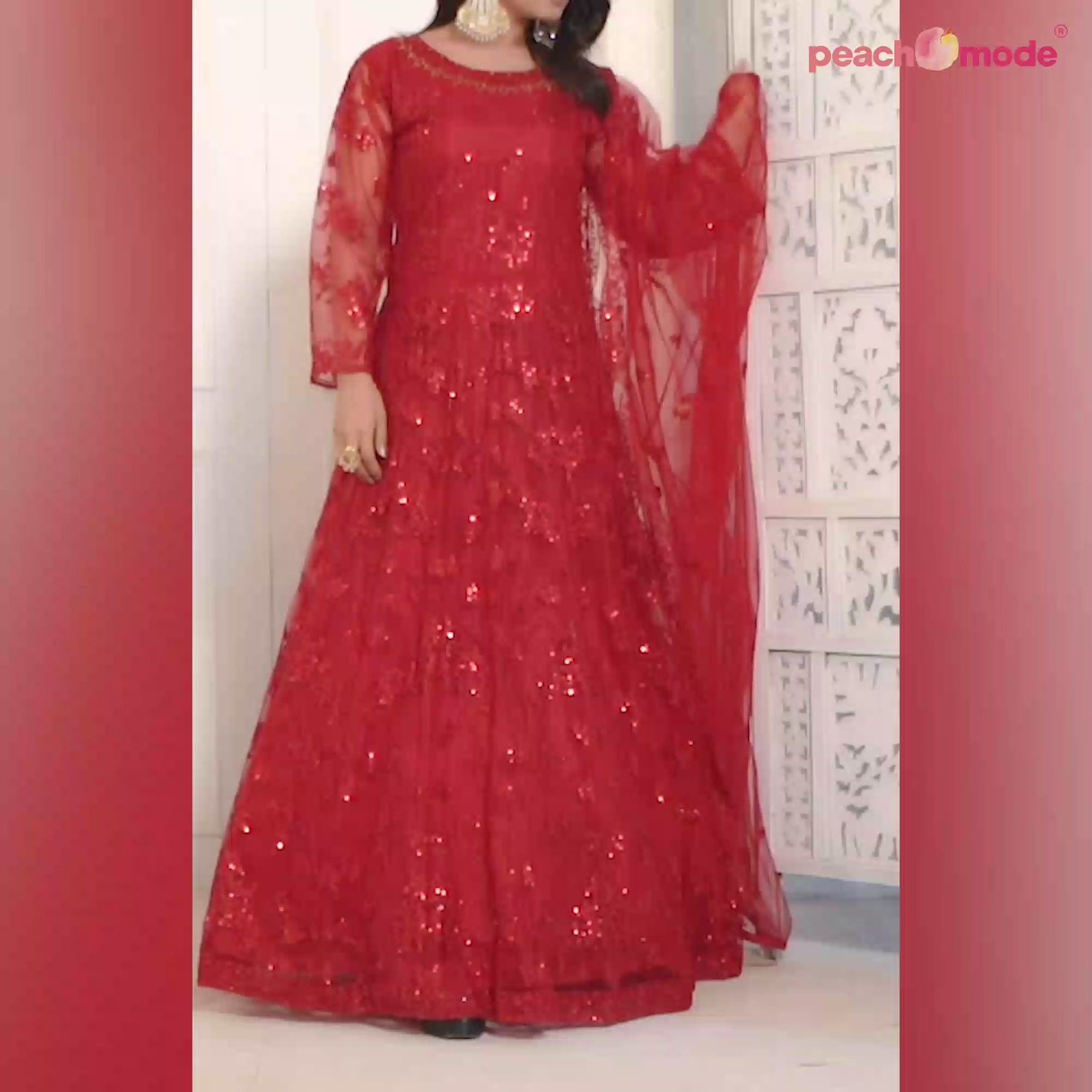Black colored gown is prettified with thread and sequins work as shown which makes it appear classy. This top is made of netted fabric which is accompanied with santoon bottom, santoon lining and netted dupatta. Women can buy this gown to wear for their parties and functions. Note:- The actual product may differ slightly in color and design from the one illustrated in the images when compared with computer or mobile screen.