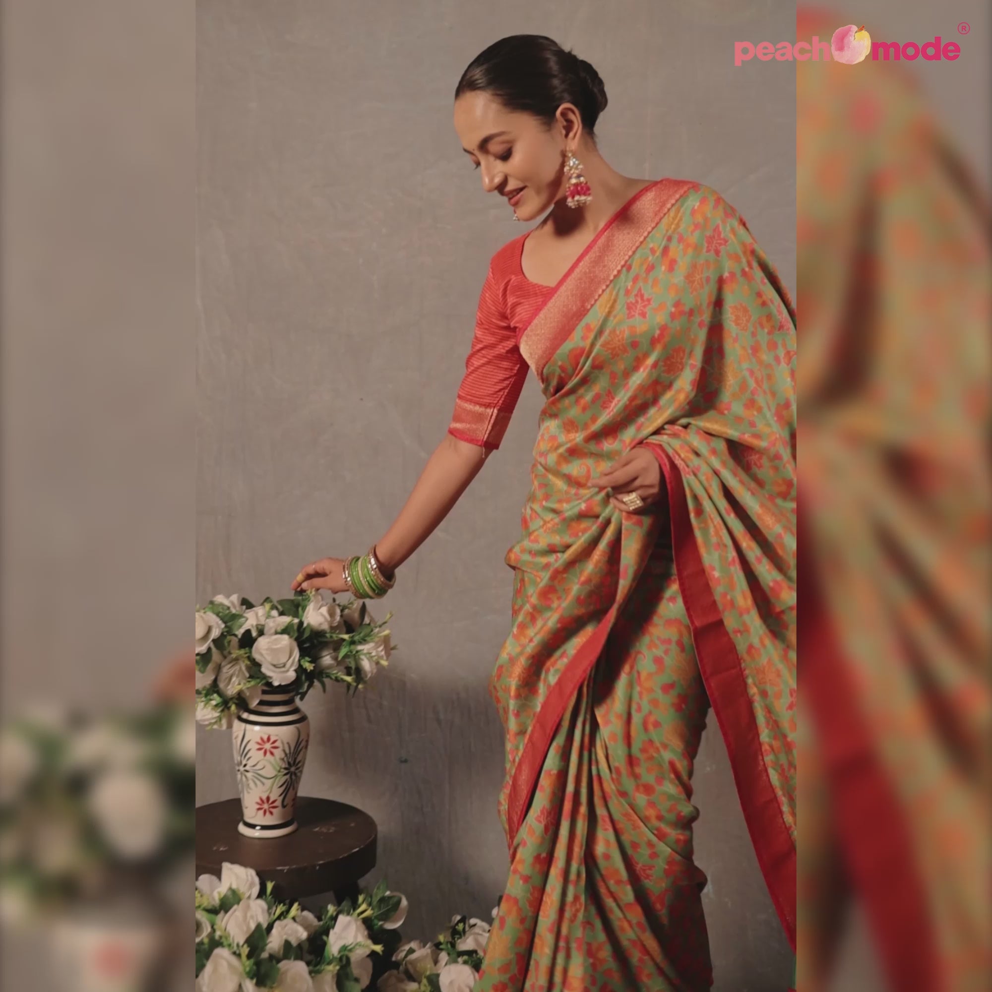 Green colored saree is made from tussar silk fabric which is highlighted with beautiful printed with lace border work as shown. comes along unstitched tussar silk blouse piece which you can customise as per your design/style. Occasion - You can wear this saree for festive and functions.