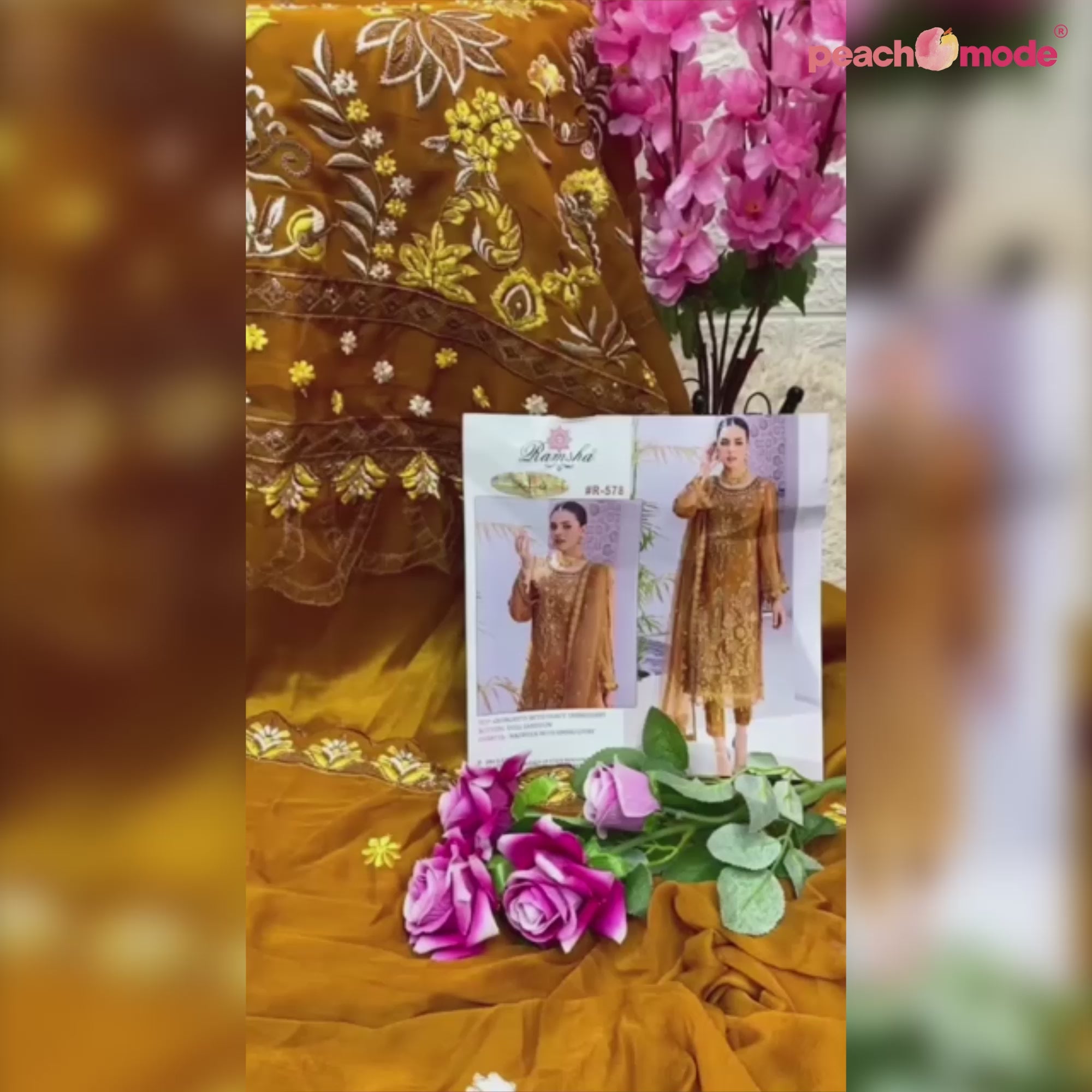 Mustard colored suit is prettified with heavy embroidered work as shown which makes it appear classy. This top is made of georgette fabric which is accompanied with santoon bottom, lining and embroidered netted dupatta. Women can buy this suit to wear for their parties and functions.