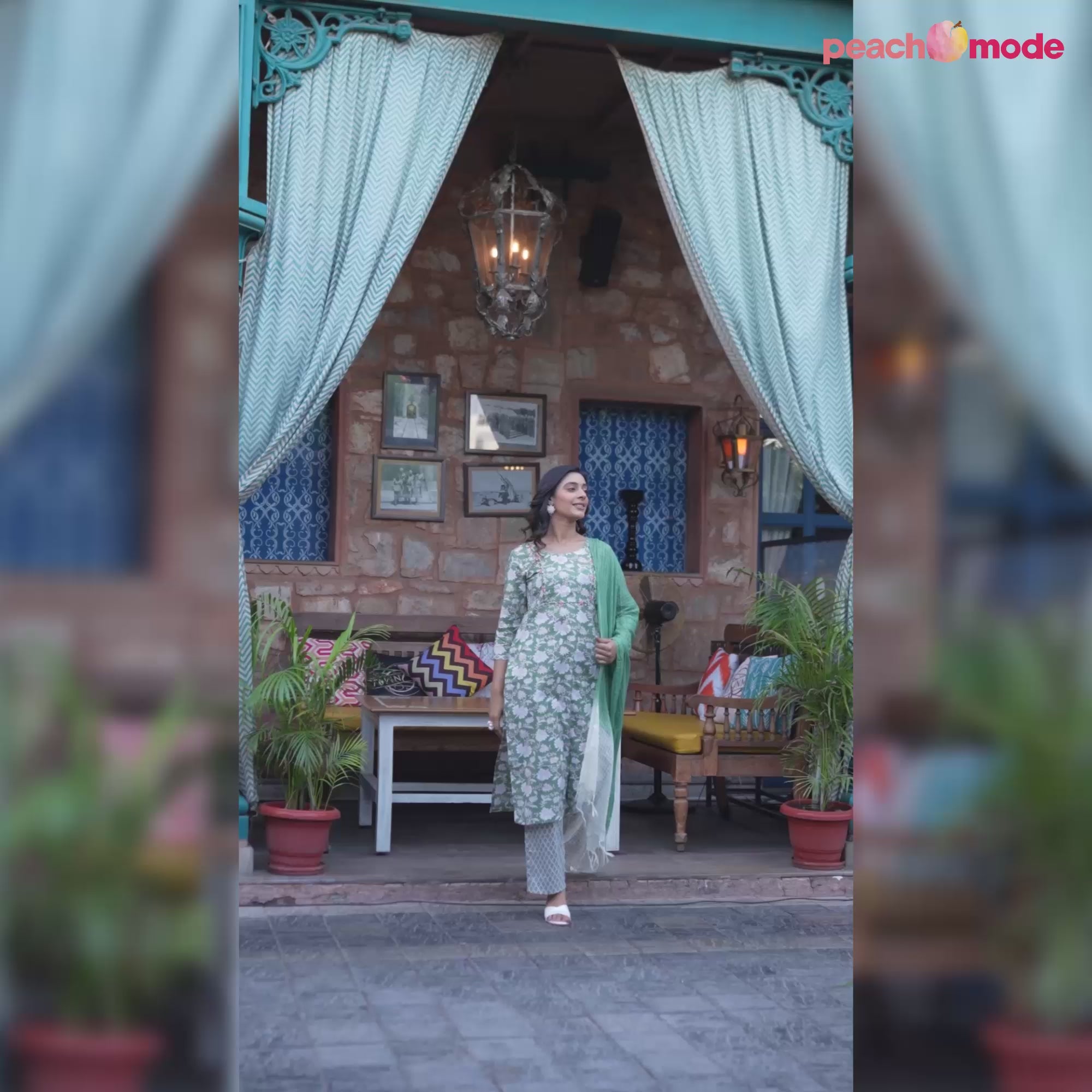 Pista green colored co ord set is prettified with floral printed work as shown which makes it appear classy. This top is made of pure cotton fabric which is accompanied with pure cotton bottom and kota doria dupatta. Women can buy this set to wear for their festive, outing and function.