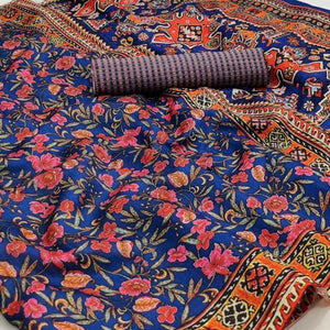 Blue Digital Printed Pure Cotton Saree |