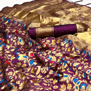 Yellow Woven Cotton Blend Saree |