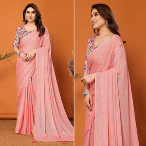 Pink Floral Printed Cotton Blend Saree With Zari Weaving Border |