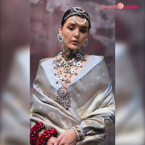 Black & Gold Floral Printed Dola Silk Saree With Woven Border |