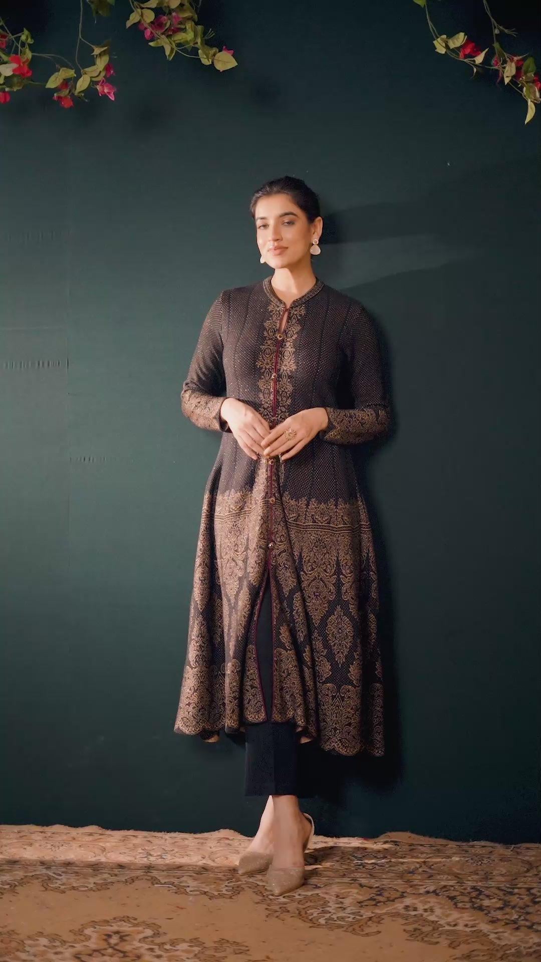 Black colored suit is prettified with embroidered work as shown which makes it appear classy. This top is made of woolen fabric which is accompanied with woolen bottom and woolen dupatta. Women can buy this suit to wear for their festive, functions and events.