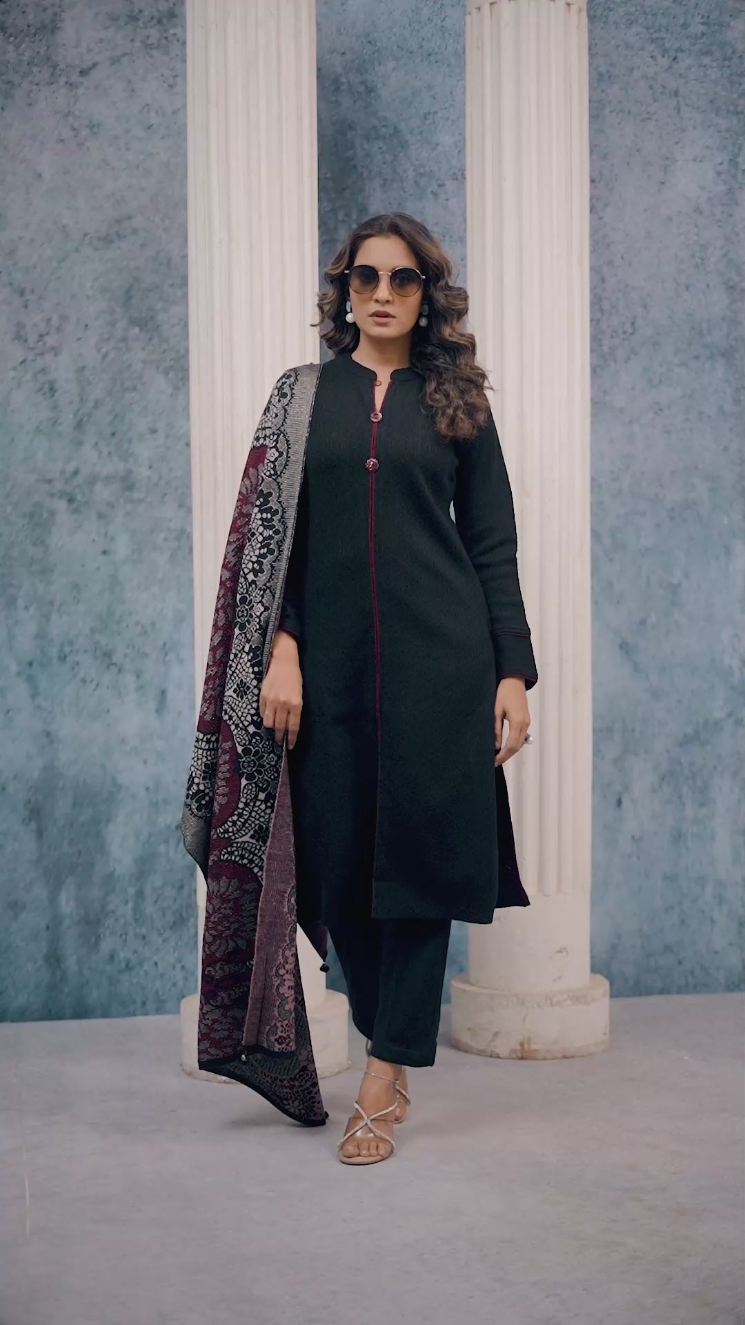 Black Weaving Woolen Front Slit Salwar Suit