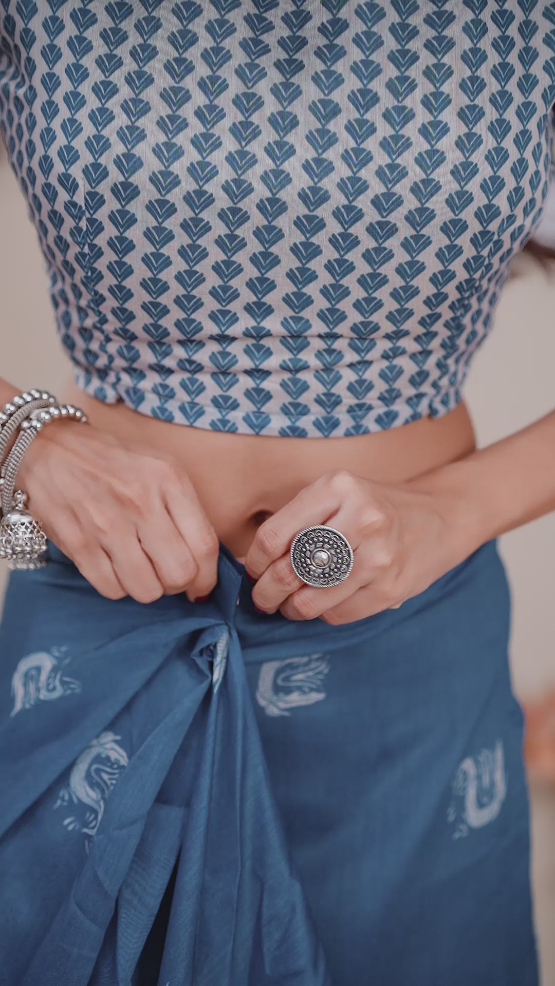 Blue Digital Printed Cotton Blend Ready To Wear Saree