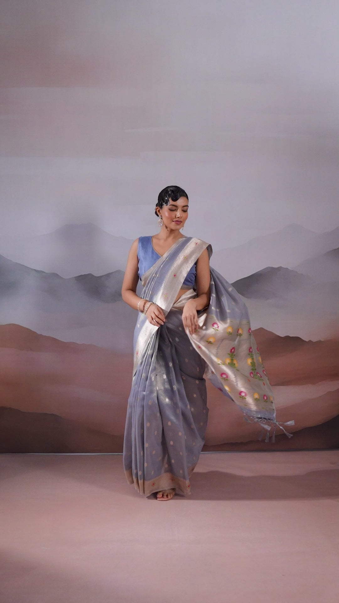 • Design Feature: Blue tissue saree enhanced with beautiful zari butti weaving for an elegant and traditional look.