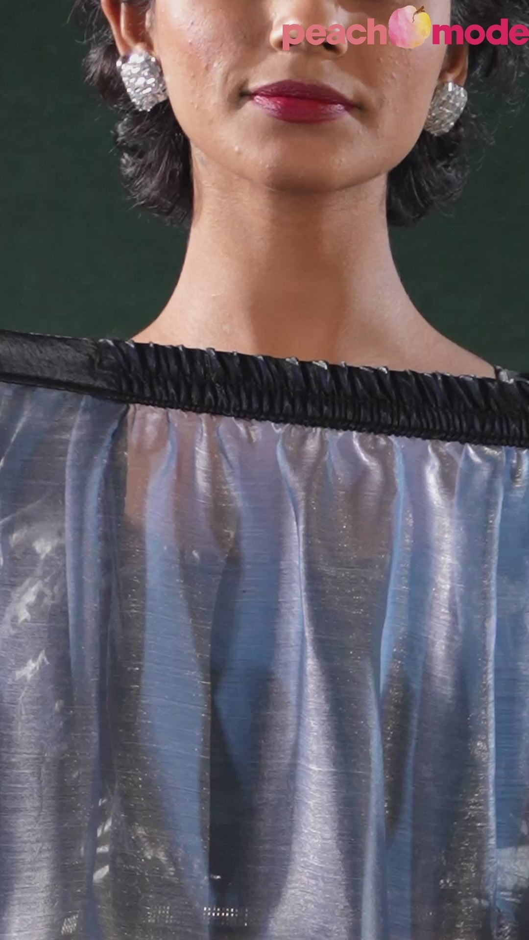 Bluish Grey Solid With Stone Work Satin Silk Ombre Ready To Wear Saree