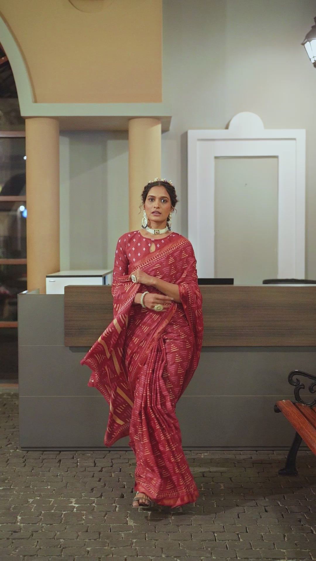 Chic Pink Geometric Printed Pure Mulmul Saree