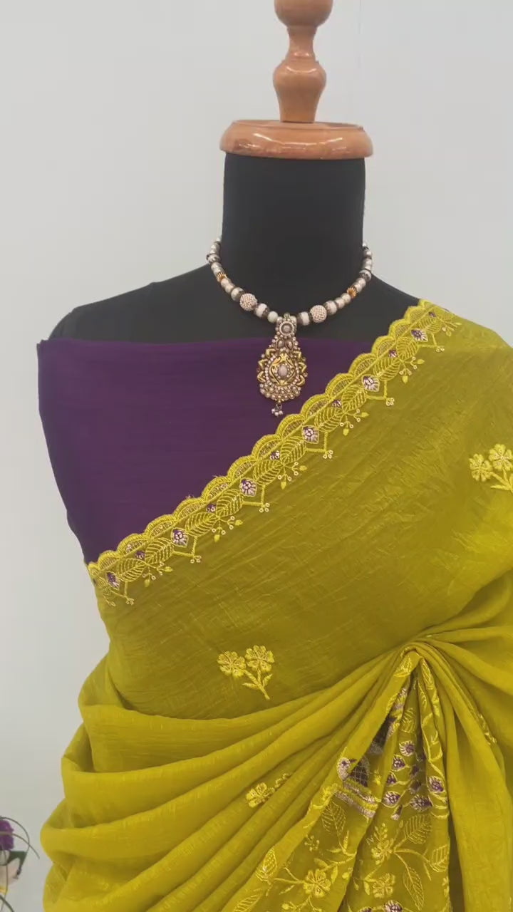 - Lightweight & Comfortable: Made from premium flowy crunchy crush, this saree offers a breathable, soft drape for all day comfort and effortless elegance.
