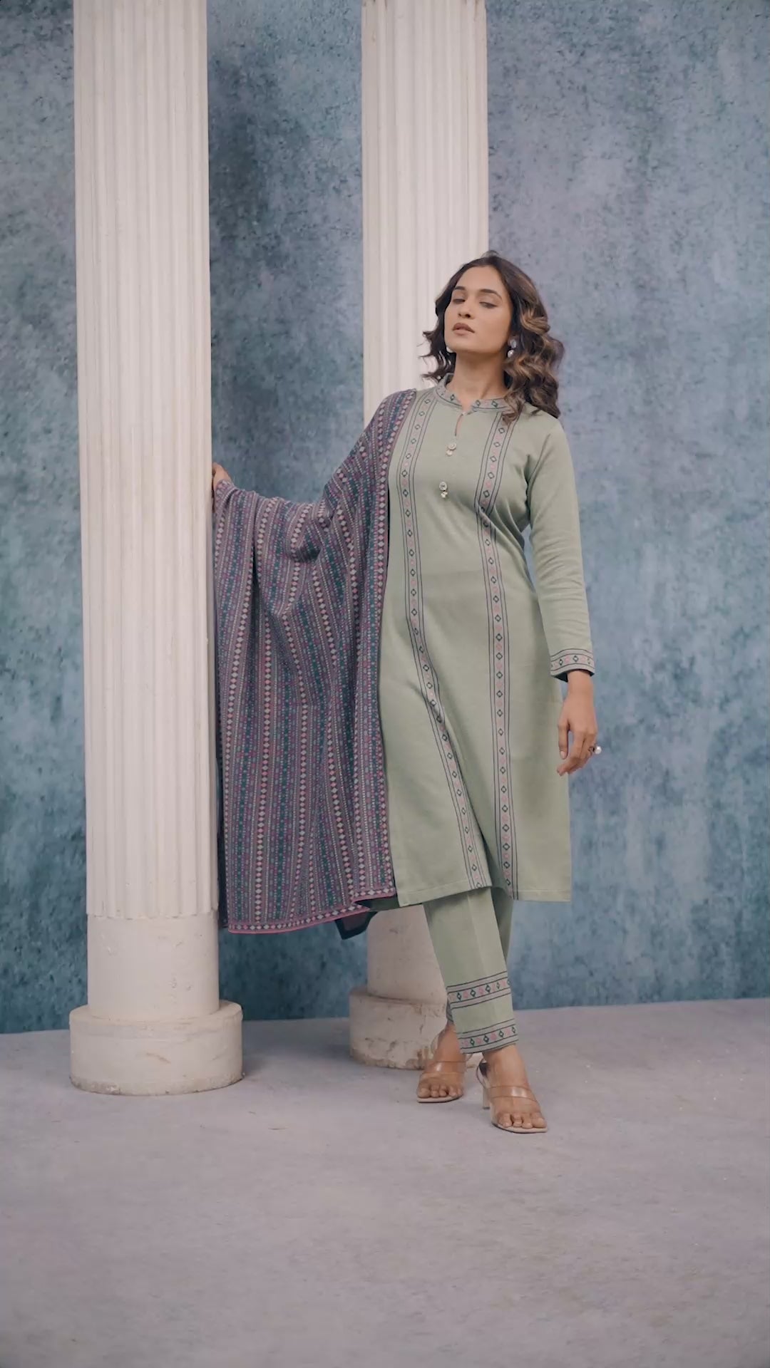 Green Weaving Woolen Straight Salwar Suit