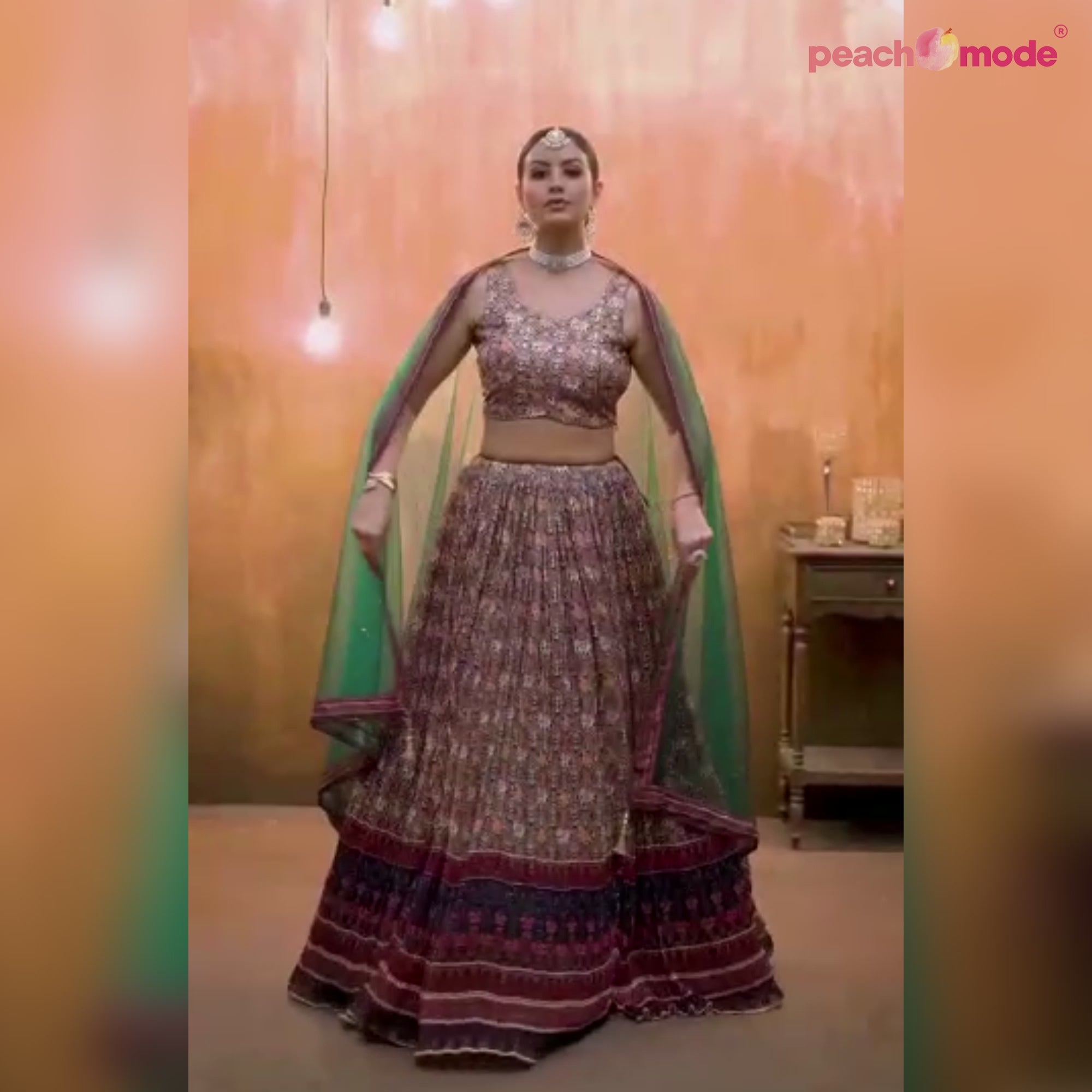 Green Printed With Sequins Work Georgette Lehenga Choli