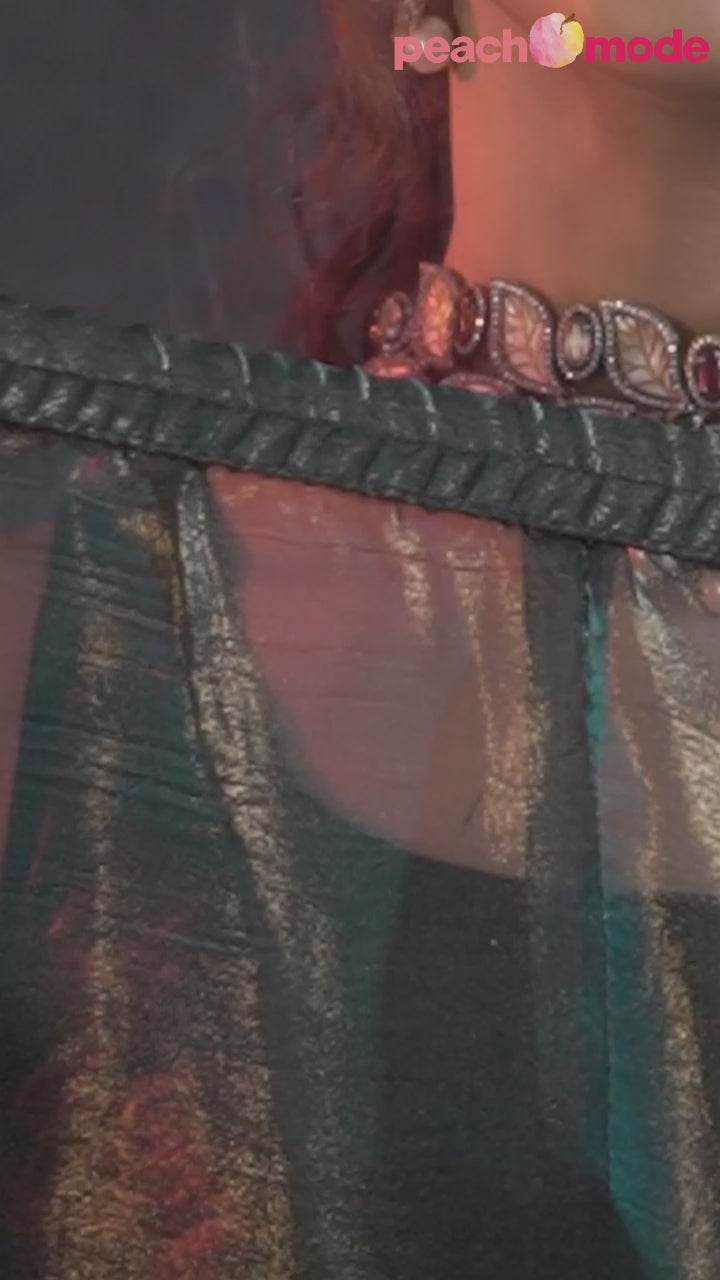 - Subtle Sophistication: This ready-to-wear saree in a refreshing green hue features a beautiful solid pattern that radiates timeless charm.