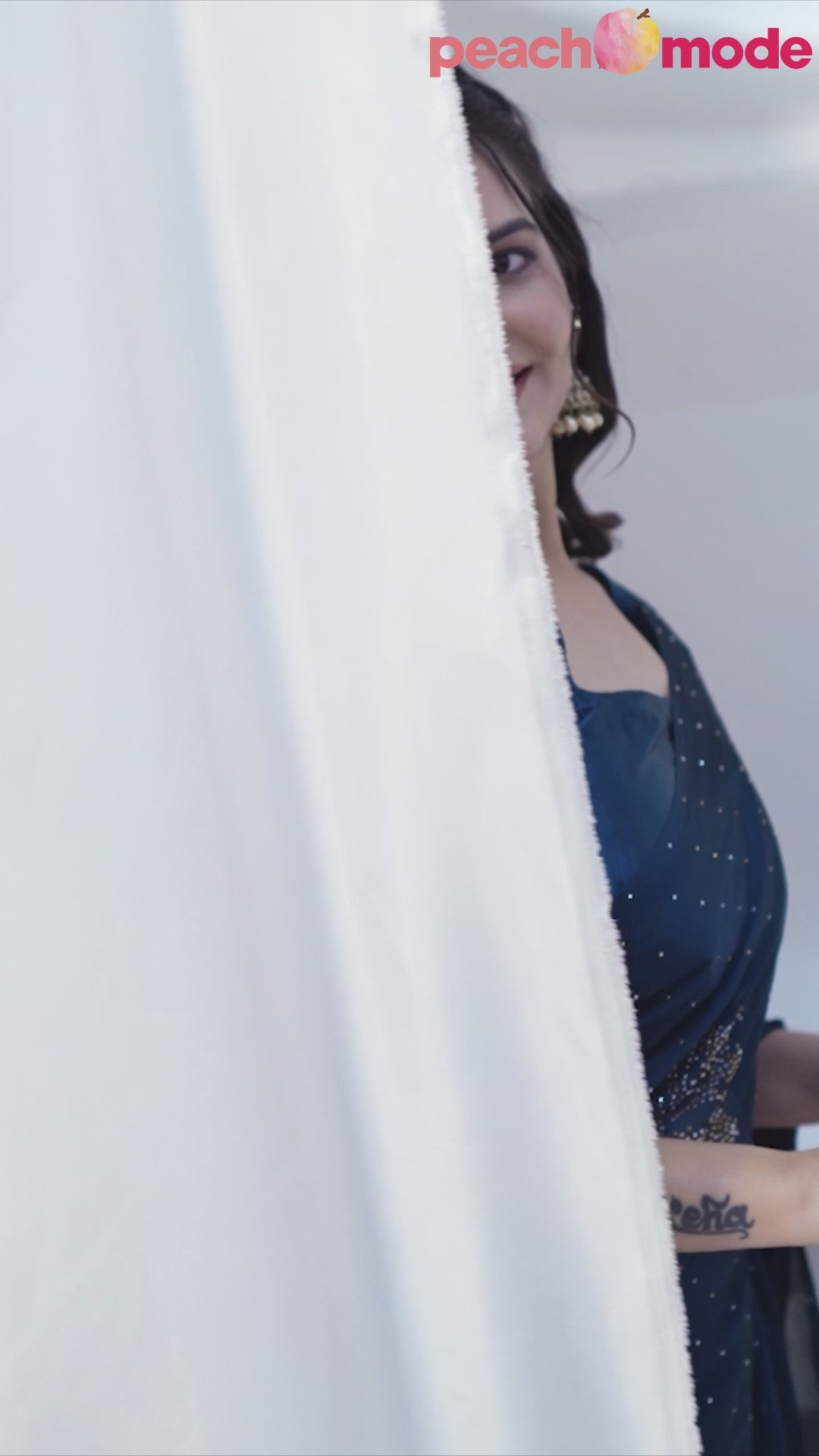 Morpich Blue colored saree is made from rangoli art silk fabric which is highlighted with beautiful floral swarovski work as shown. Comes along with mono banglory blouse piece which you can customise as per your design/style. Occasion - You can wear this saree for party, festive and functions. Note:- the actual product may differ slightly in color and design from the one illustrated in the images when compared with computer or mobile screen.