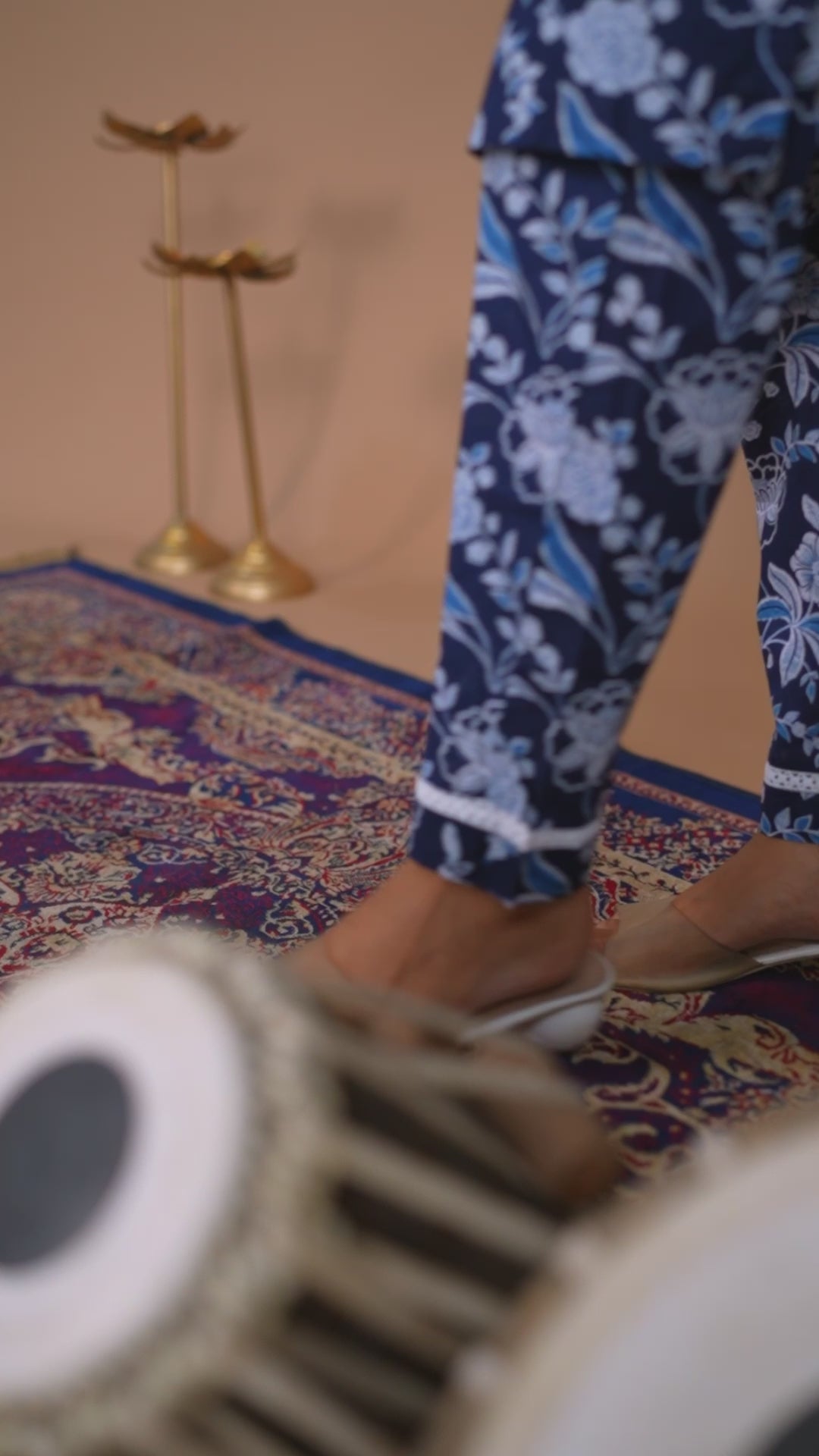Navy Blue Floral Printed Pure Cotton Top Bottom Set