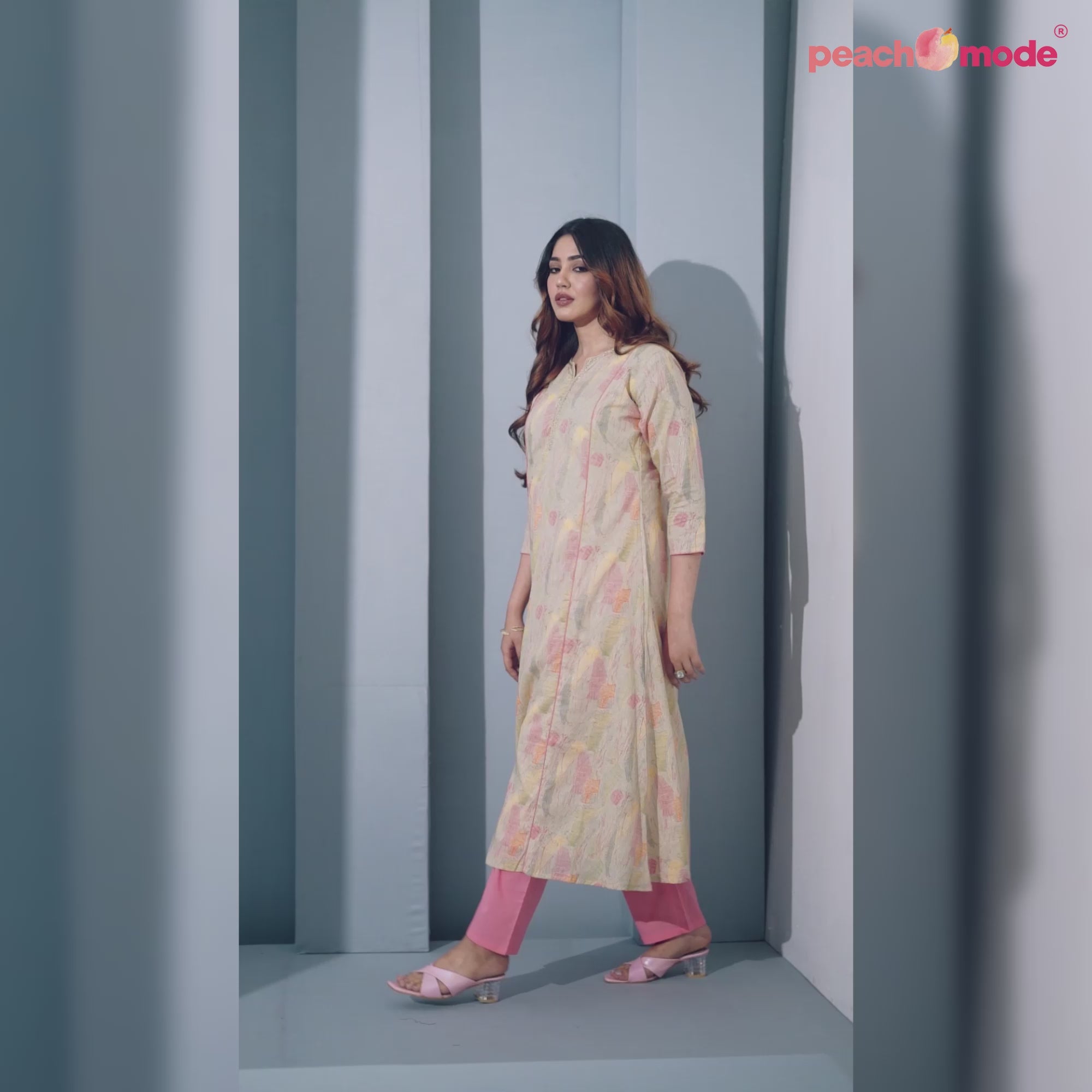 Off White Foil Printed Pure Cotton A-line Salwar Suit