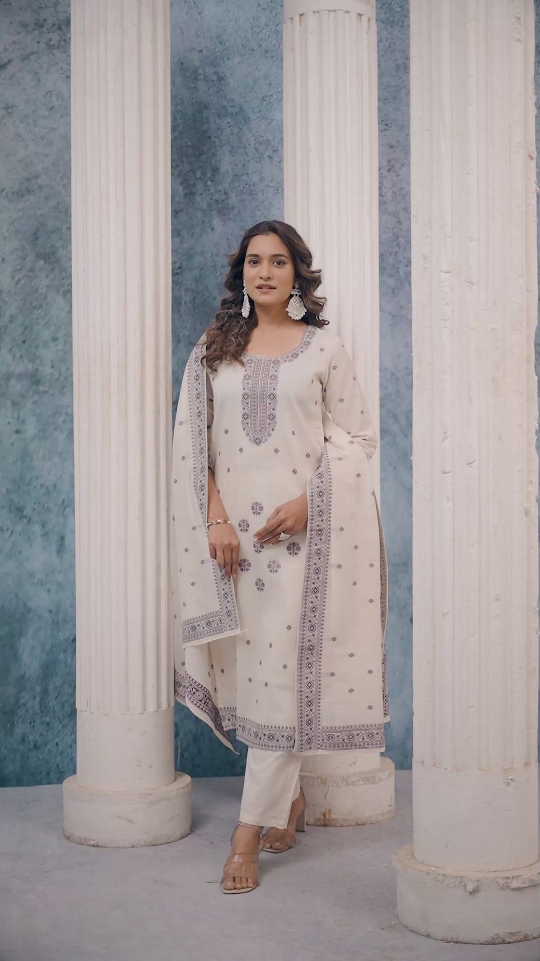 Off White & Wine Jacquard Weaving Pure Cotton Straight Salwar Suit