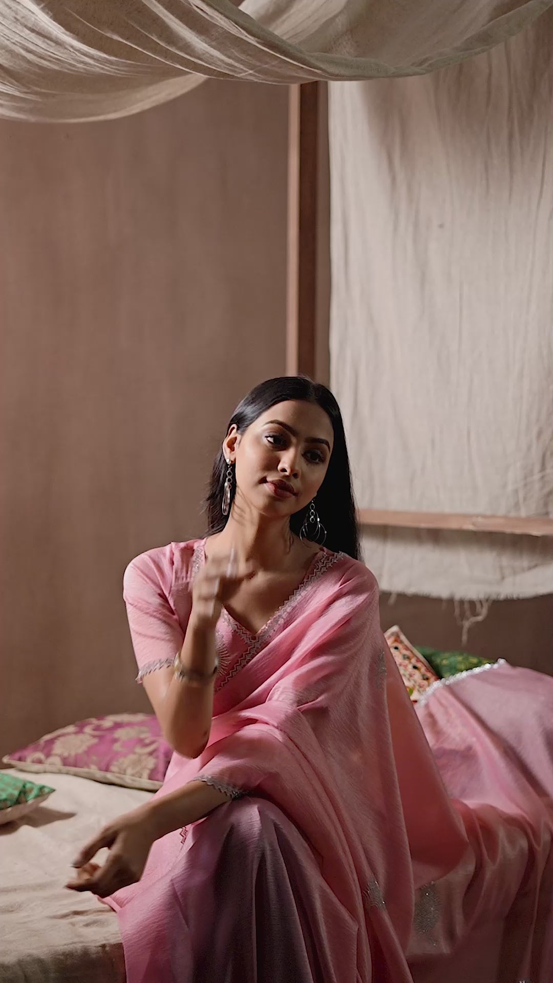Onion Pink Stone Work Embroidered Pure Silk Saree