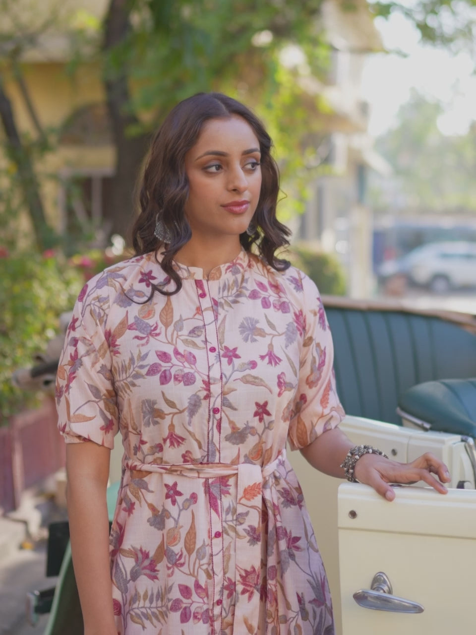 Peach colored kurti is prettified with floral printed work as shown which makes it appear classy. This top is made of pure cotton fabric. Women can buy this kurti to wear for their casual, daily and office.