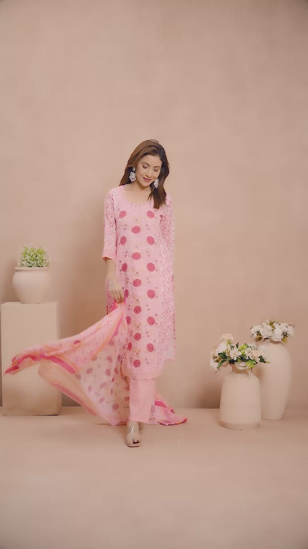 - Charming & Graceful: This light pink colored suit is adorned with elegant floral embroidered work, lending it a graceful and refined charm.