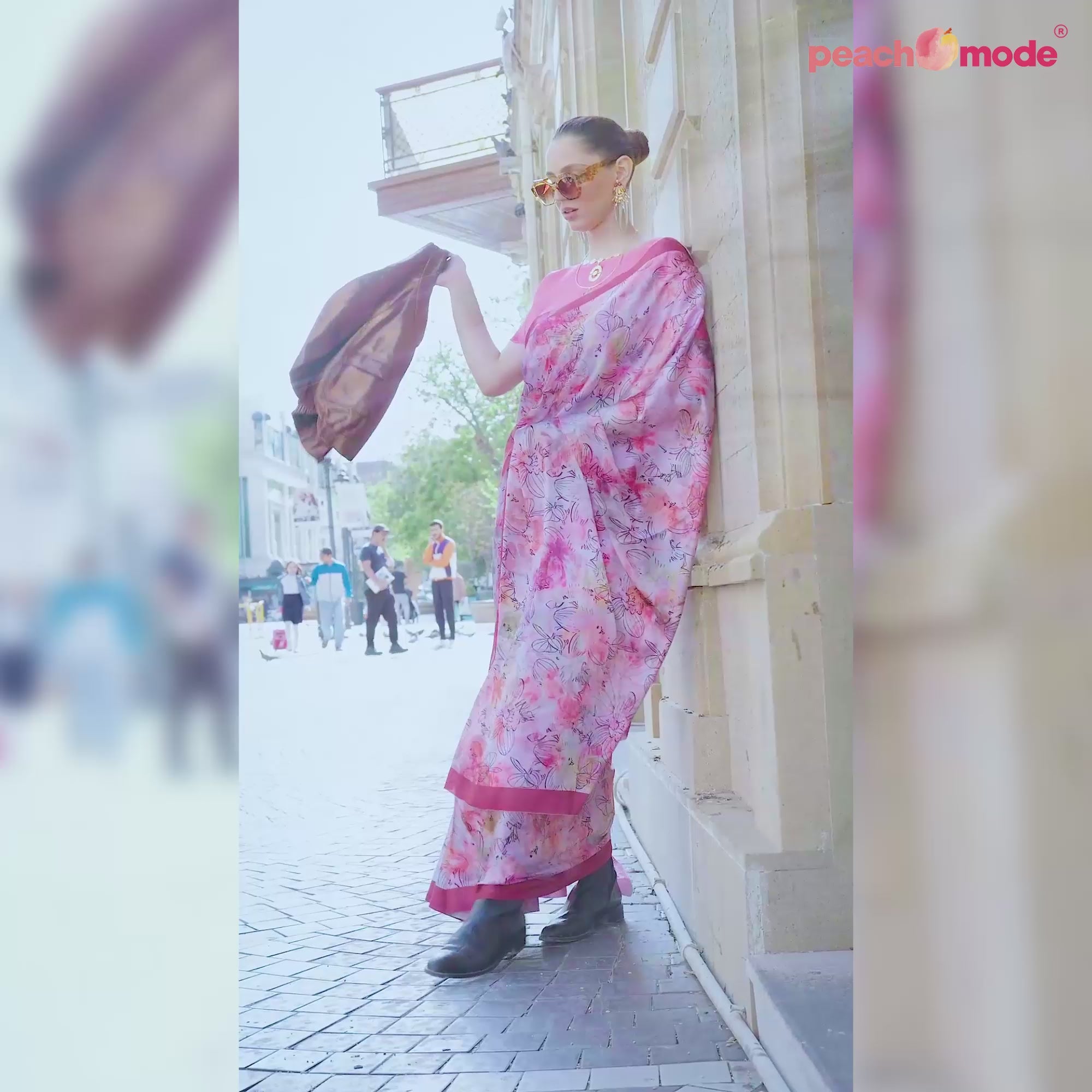 Pink colored saree is made from satin fabric which is highlighted with beautiful digital printed work as shown. Comes along with unstitched satin blouse piece which you can customise as per your design/style. Occasion - You can wear this saree for casual and daily wear. Note:- the actual product may differ slightly in color and design from the one illustrated in the images when compared with computer or mobile screen.