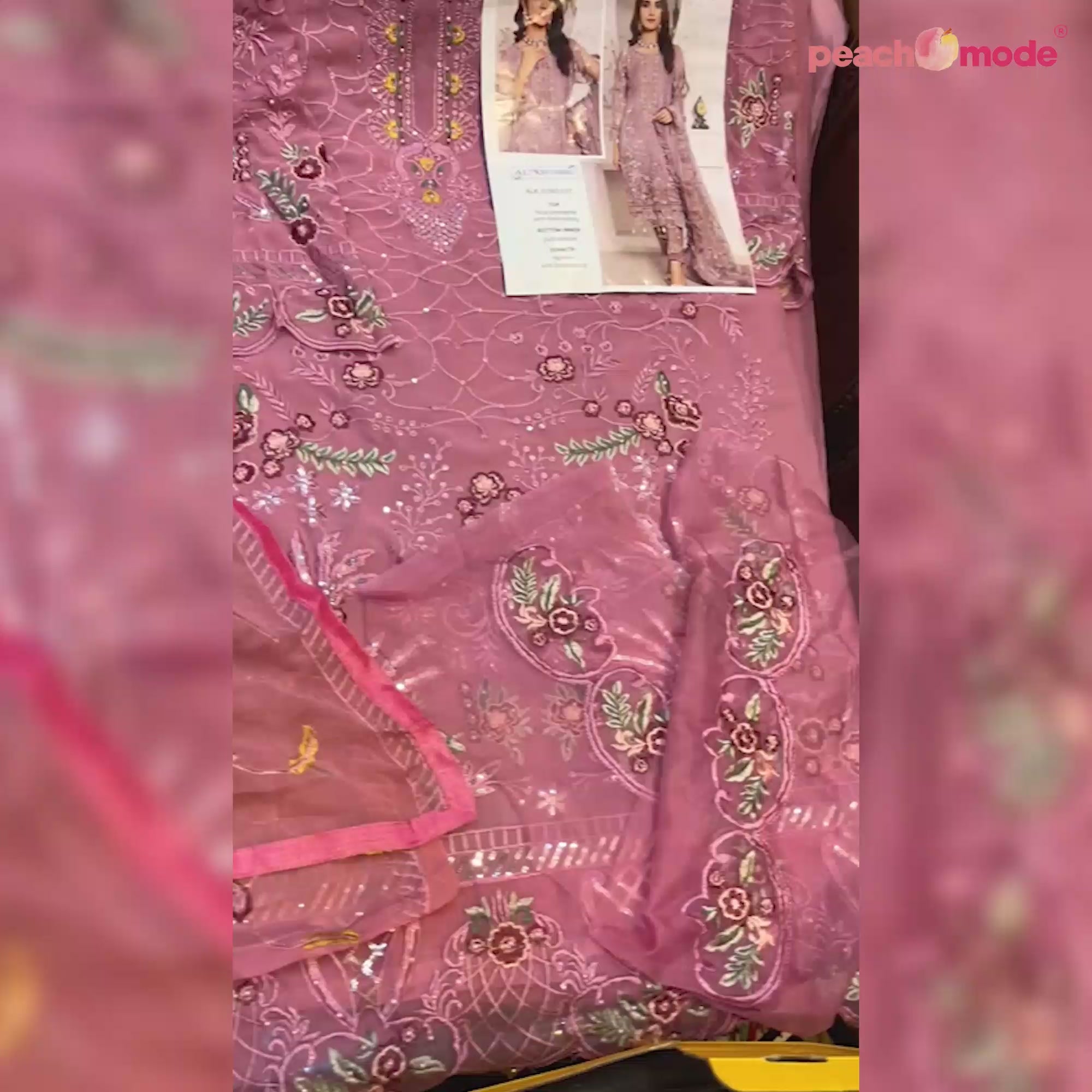 Pink Embroidered With Embellished Georgette Pakistani Suit - Peachmode