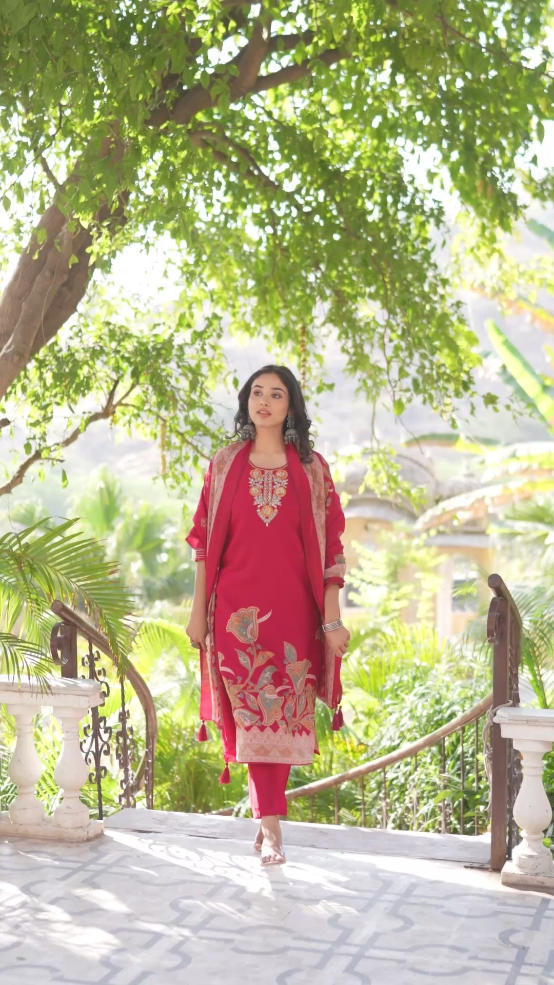 • Details: This exquisite pink salwar suit is adorned with delicate floral embroidery handwork on the top, adding a touch of timeless elegance and grace.