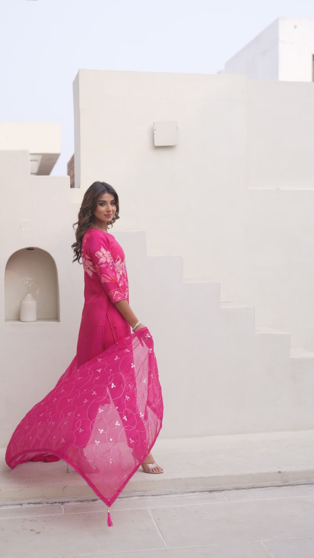 Pink Floral Printed Muslin Salwar Suit With Handwork