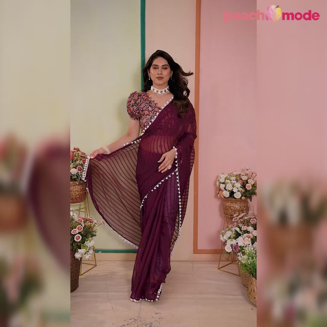 Purple colored saree is made from georgette fabric which is highlighted with floral print as shown. Comes along with unstitched digital printed banglori silk blouse piece which you can customize as per your design/style. Occasion - You can wear this saree for casual and others.