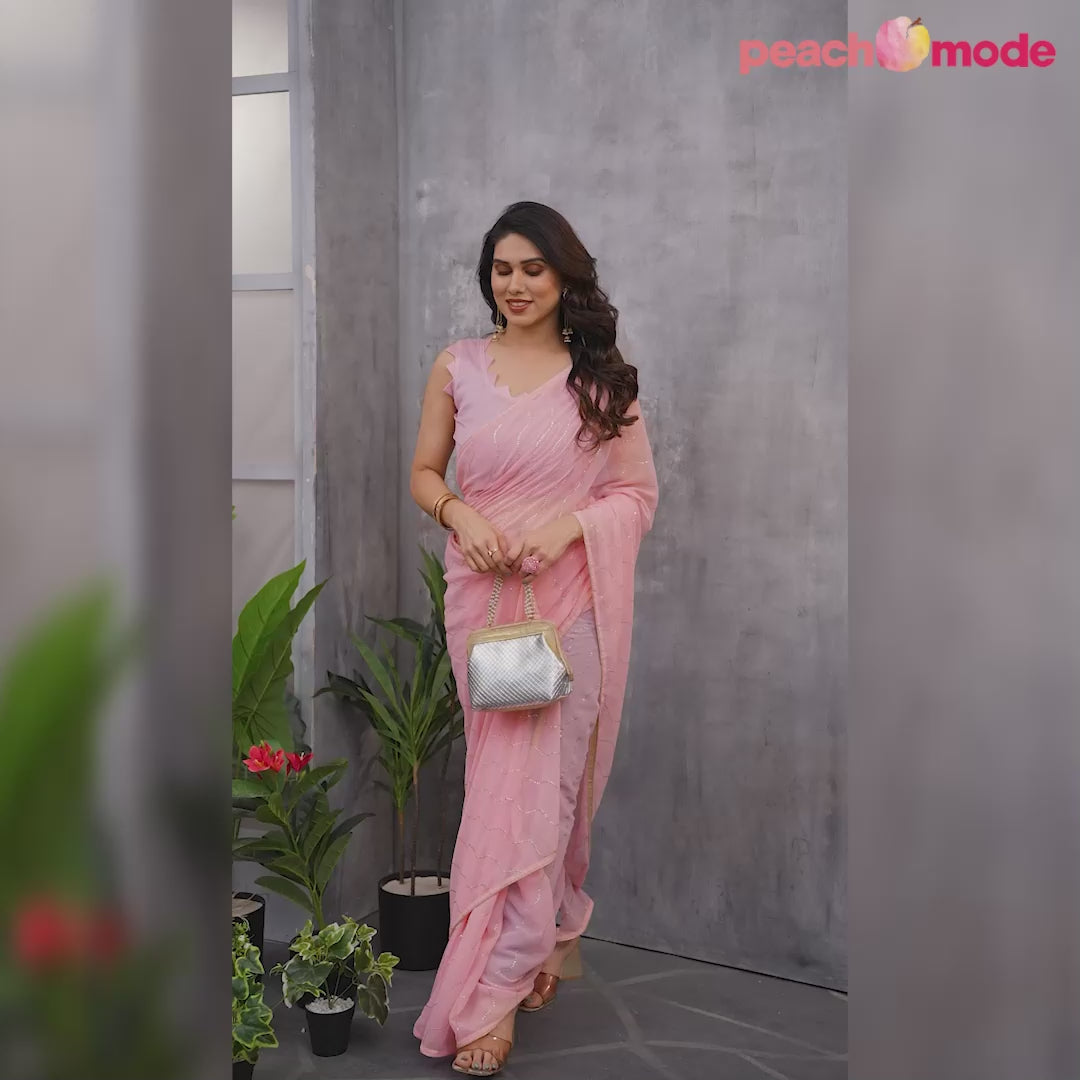 Rose Pink Swarovski Work Embroidered Georgette Saree