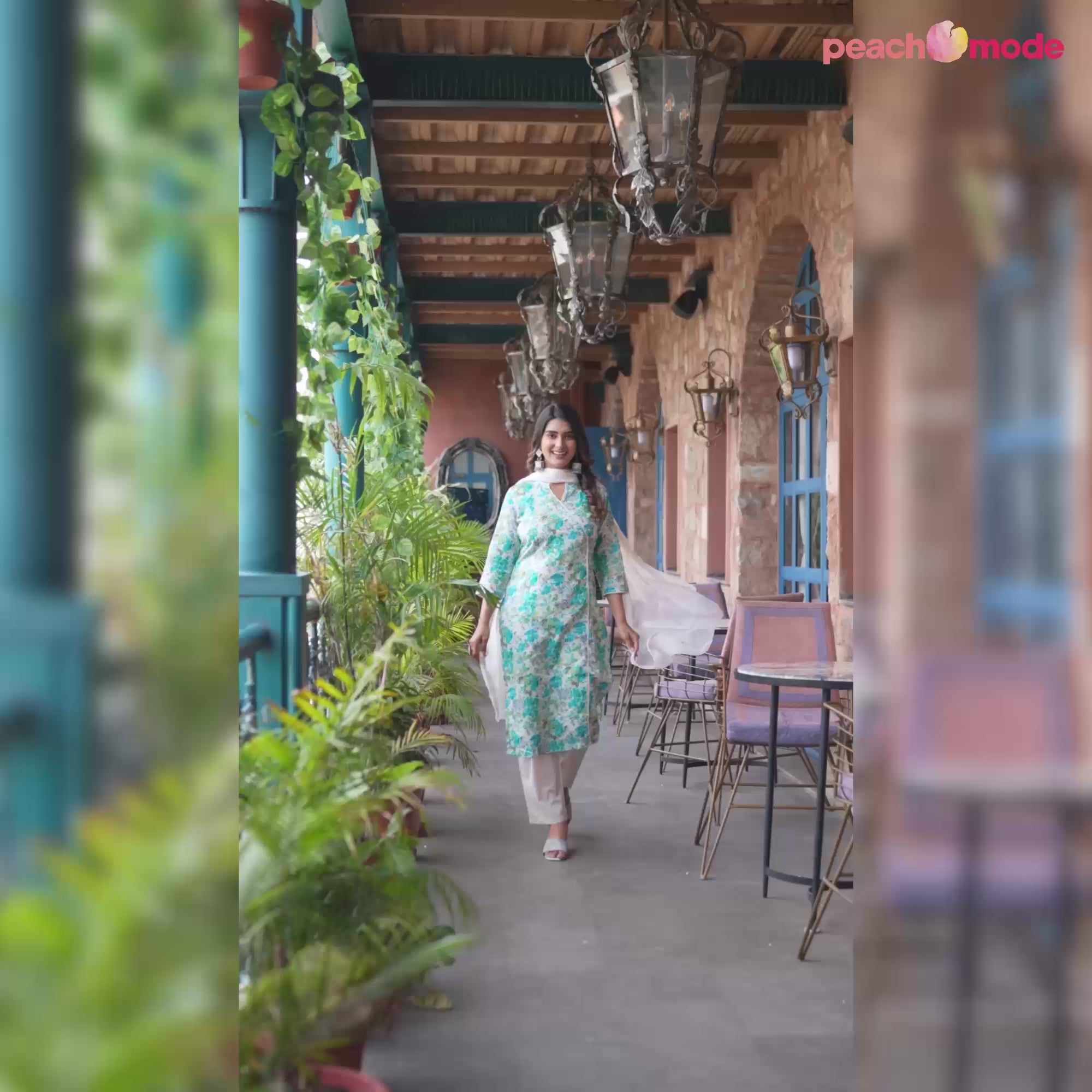 White colored suit is prettified with floral print with sequins work as shown which makes it appear classy. This top is made of mulmul cotton fabric which is accompanied with pure cotton pant and chiffon dupatta. Women can buy this set to wear for their festive, functions and other.