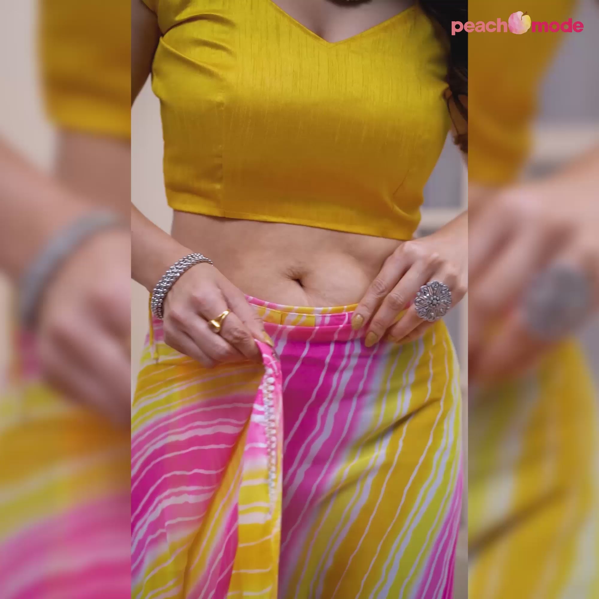 Yellow & Pink Printed Ready To Wear Georgette Saree
