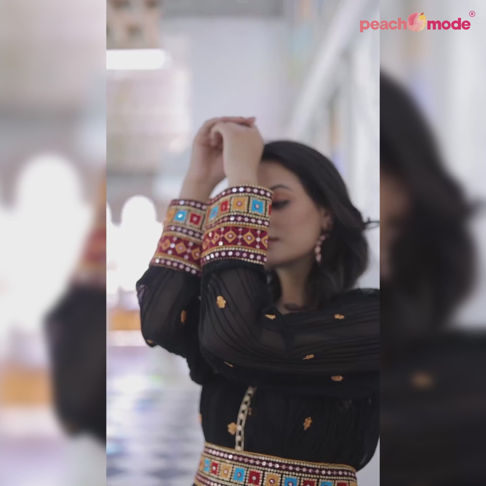 Black Floral Embroidered And Mirror Work Georgette Gown