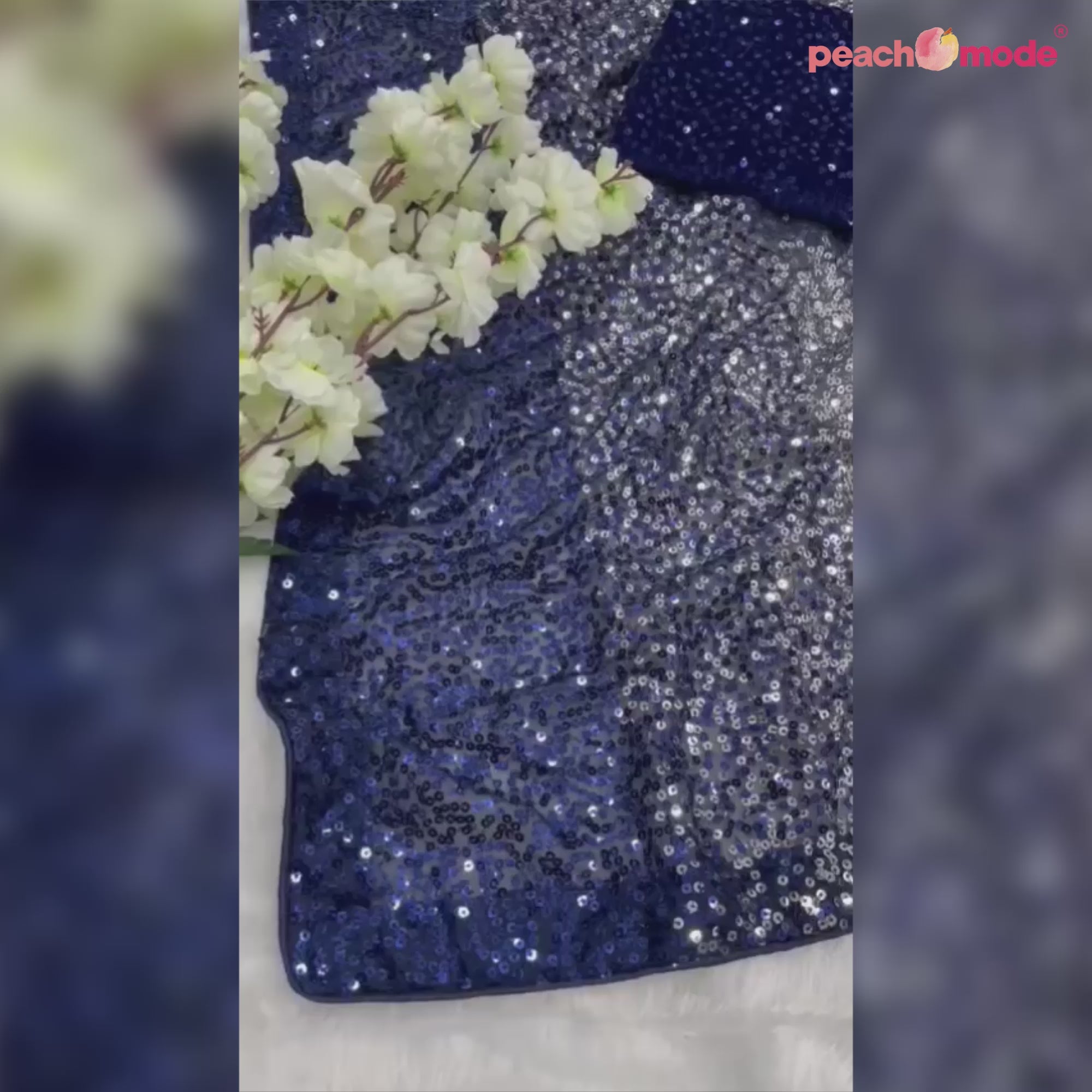 Blue colored saree is made from georgette fabric which is highlighted with beautiful sequins embroidered with back patch lace border and piping work as shown. comes along unstitched sequins embroidered velvet blouse piece which you can customise as per your design/style. Occasion - You can wear this saree for parties, functions and ideal for any fashionista.
