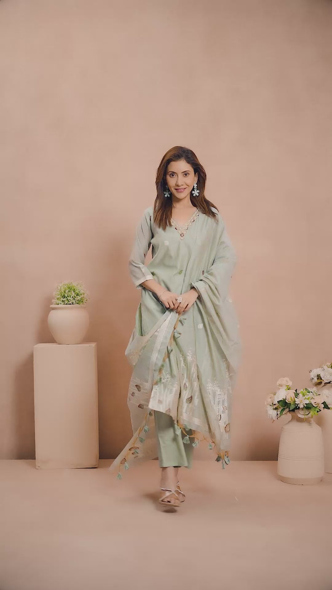 Light Green Hand-Embroidered Chanderi Jamdani Suit with Luxe Details