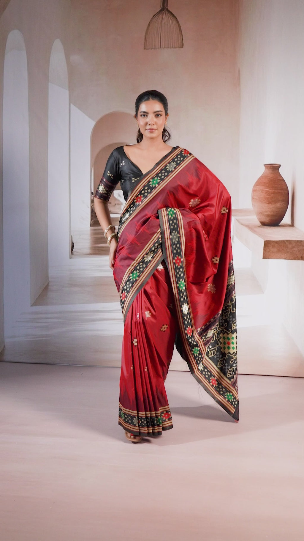 Maroon Art Silk Saree Adorned with Intricate Patola Style Woven Designs