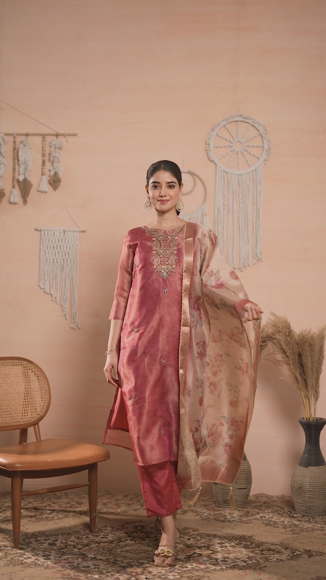 Mauve Sequins Embroidered Shimmer Straight Salwar Suit