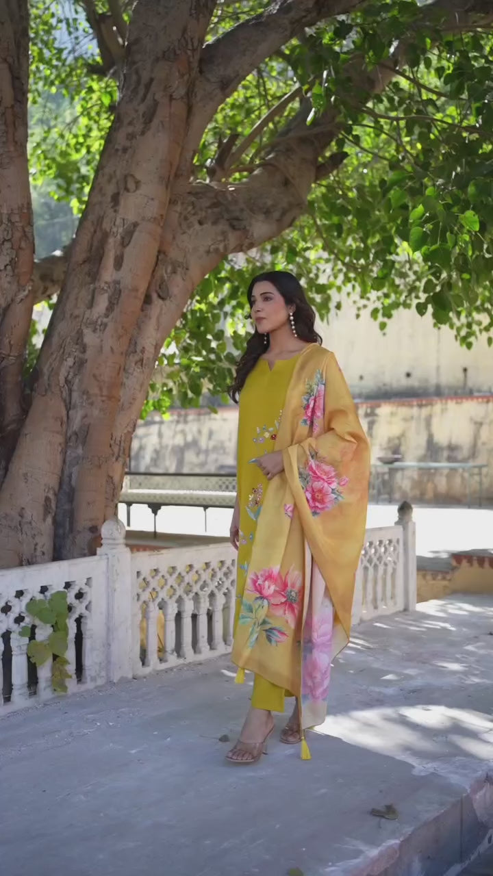 Mustard Floral Embroidered Viscose Straight Salwar Suit