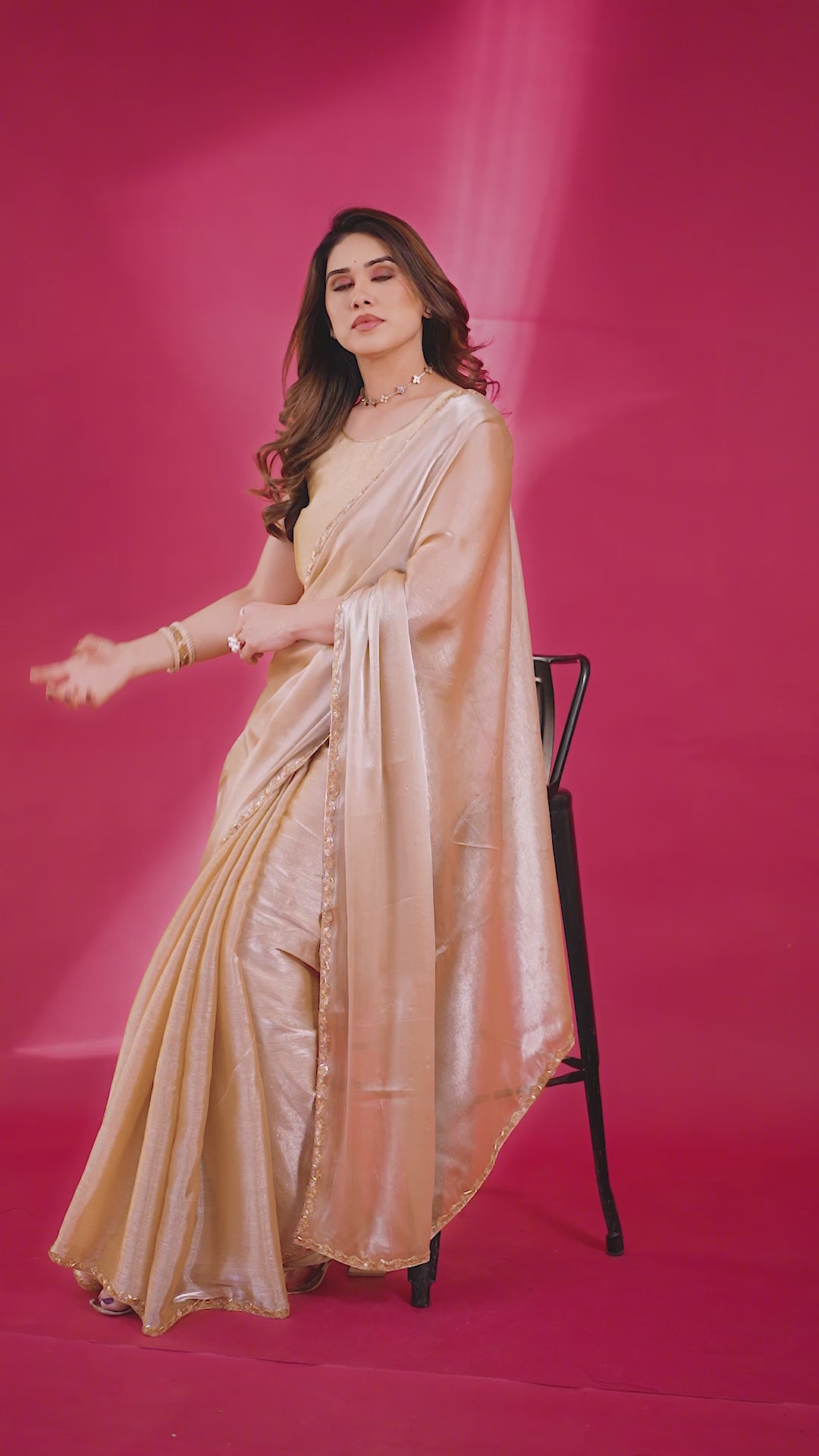 Party Wear Beige Chiffon Solid Saree with Delicate Border Embellishment