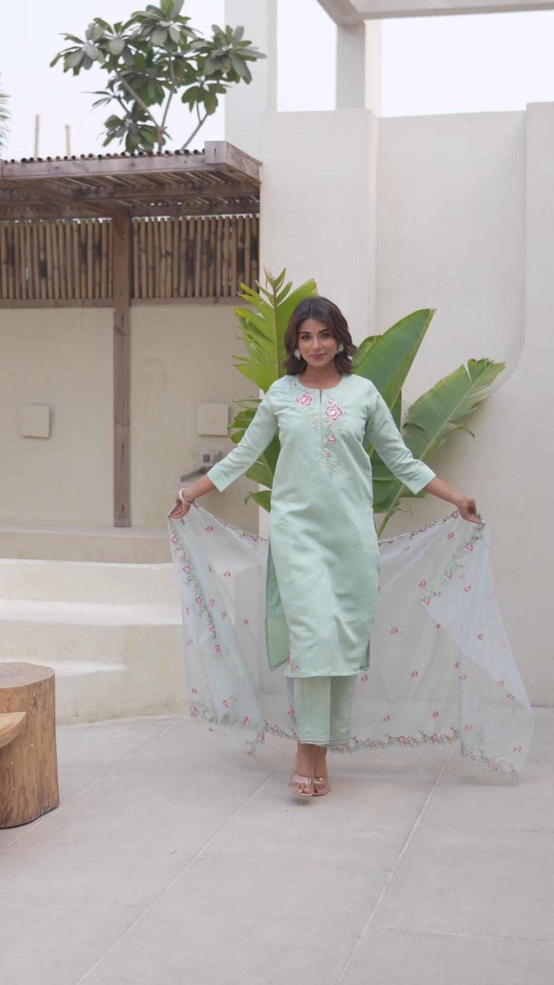 Sea Green Floral Embroidered Viscose Salwar Suit
