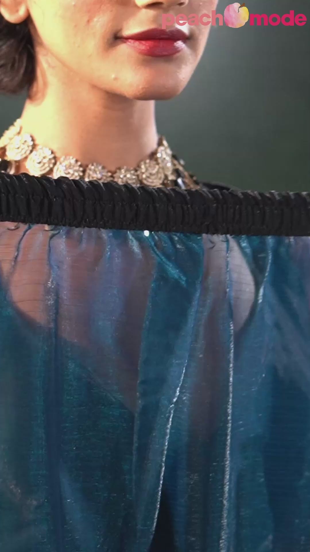 Teal Satin Ready To Wear Saree with Soft Ombre Tones and Intricate Stone Border