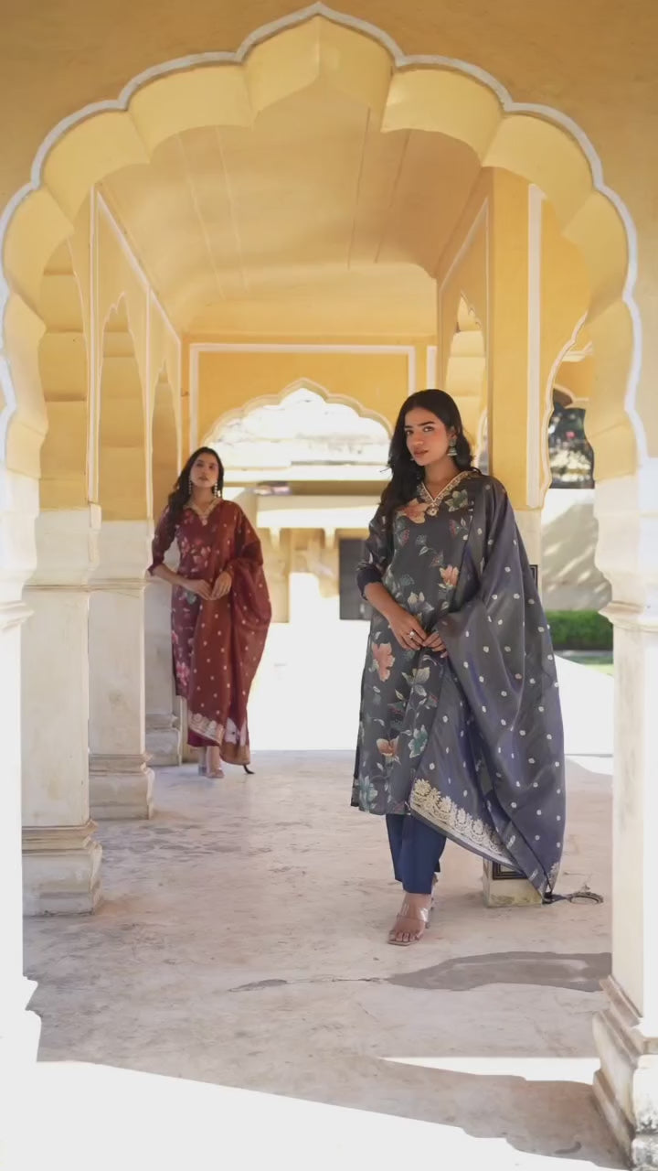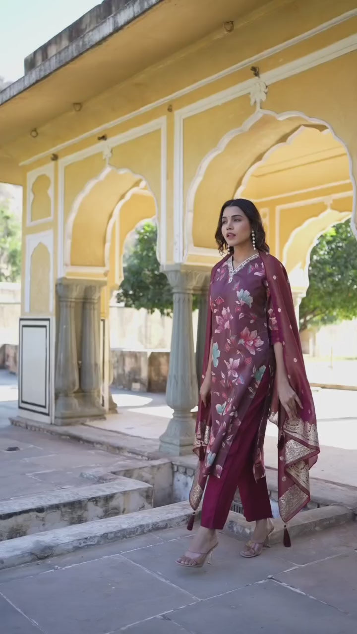 Wine Floral Foil Pinted With Handwork Viscose Salwar Suit