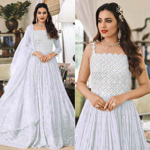 White Embroidered Georgette Gown - PeachmodeWhite Embroidered Georgette Gown - Peachmode