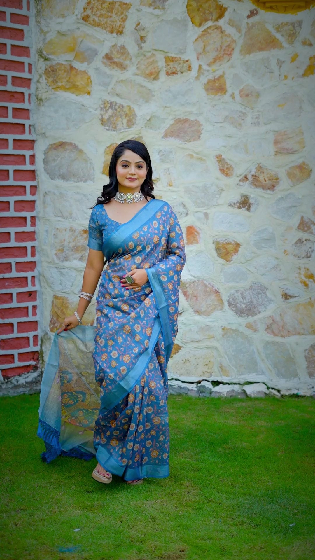 - Design Highlight: Teal-colored saree beautifully adorned with digital floral prints that add a refined and elegant appeal.